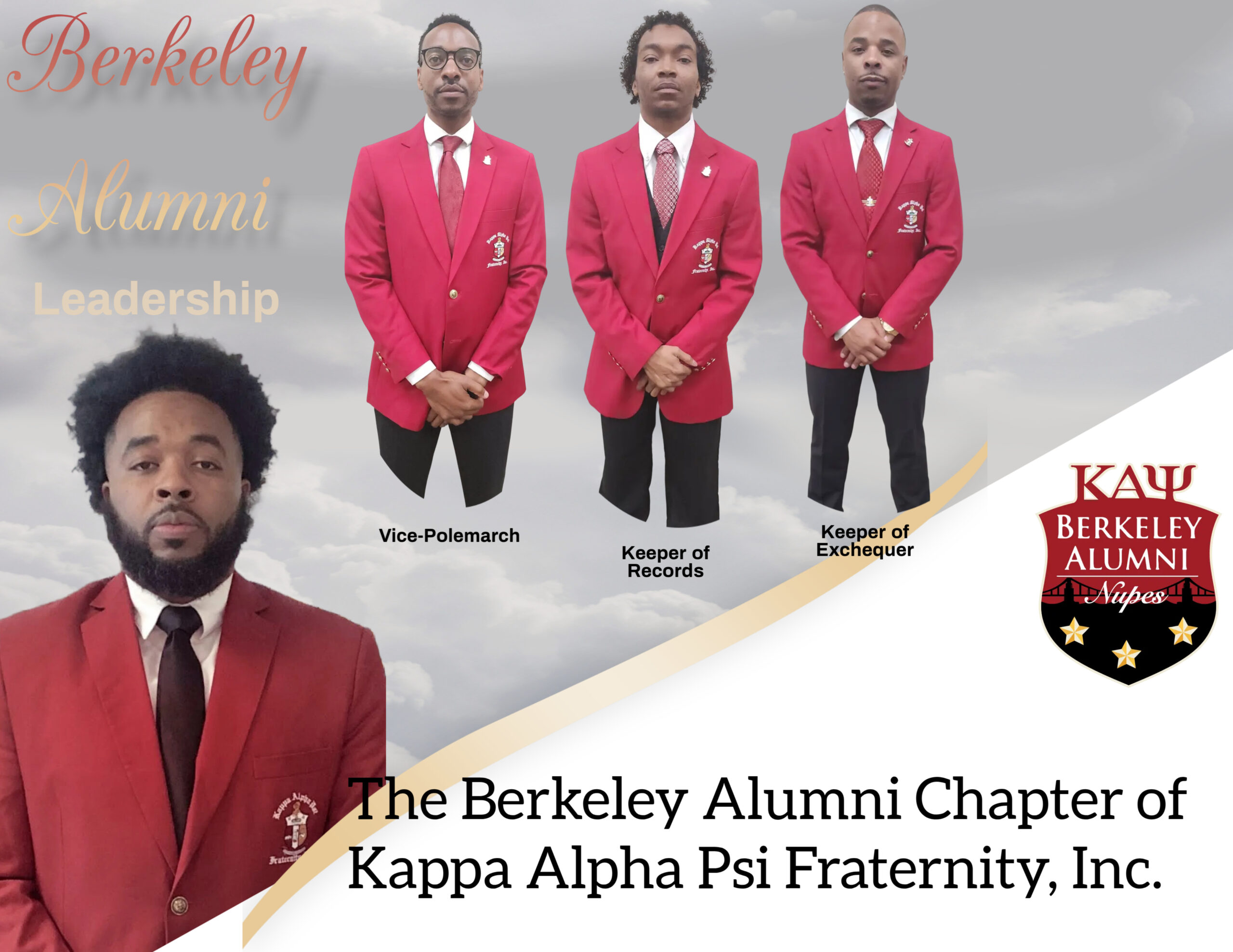Kappa Alpha Psi Fraternity, Inc.place P.O. Box 23411 Oakland, CA 94623Our ChapterOur Non-ProfitCelebrating 75 years of Achievement in every field of endeavorHistoryPolemarchAlex Bakeremail polemarch@kapsi-berkeleyalumni.org2025-2026Chapter OfficersLeading by exampleBoard Members2025-2026OfficersDuesNow accepting dues for the 2025-2026 Fraternal Year Local Regular Dues $275attach_money Local Senior Dues $250Installment plan available (click here!!!)ReclamationWhat makes us different from other chapters is our Commitment to Brotherhood!!! Join Us Come Back 2 Kappa See How We Roll!75th Chapter CharterSan Francisco Proclamation CelebrationMay 24thChapter